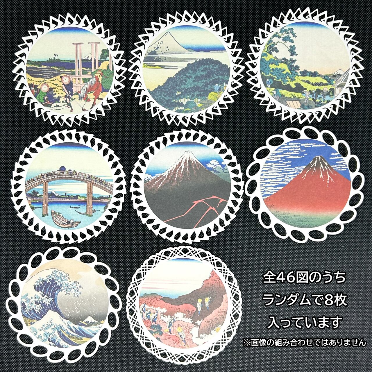 葛飾北斎の冨嶽三十六景の一部を印刷し、周りをレーザーカットでレース風に仕上げたシブカワイイコースターです。