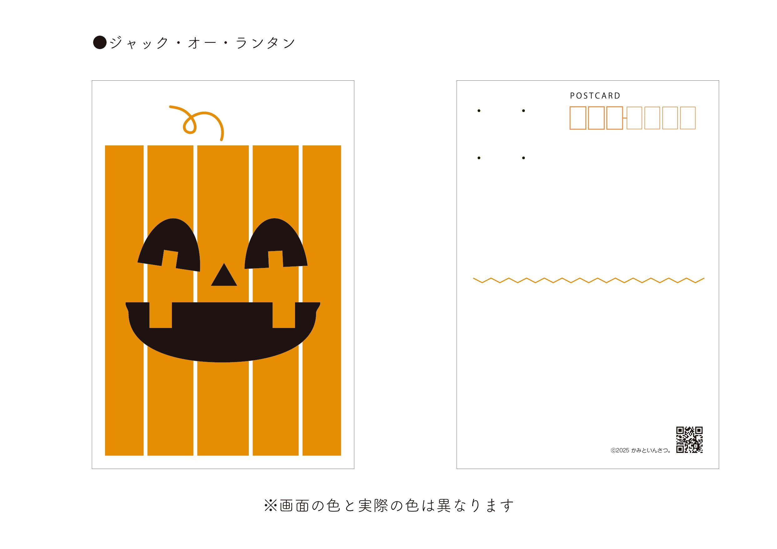 特色の蛍光ピンクを使用したハロウィーン絵柄のポストカード2種類です。