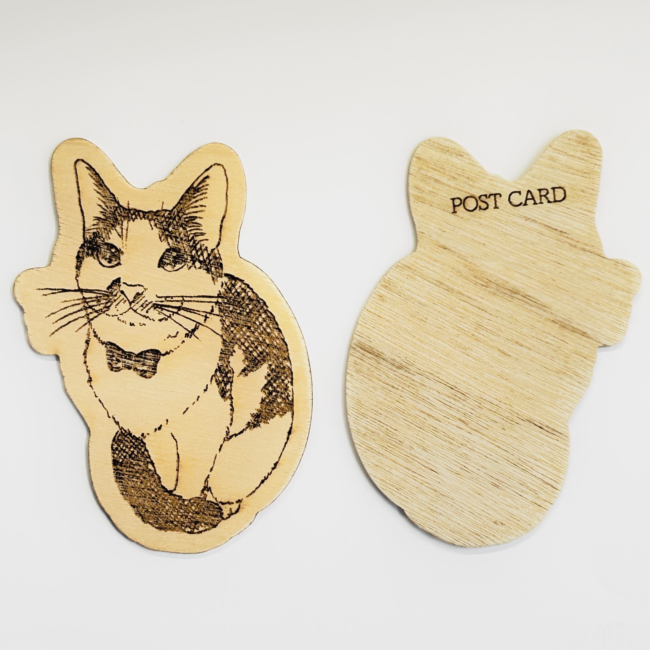 ベニヤ合板にレーザー彫刻を施した木製の絵葉書です。